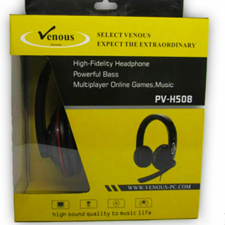 هدفون مدل « PV-H508» یکی دیگر از محصولات شرکت «ونوس» (Venous) می باشد. این محصول دارای ساختاری منحصربهفرد و کابل رابطی مقاوم است. جنس بدنه ی این هدست از نوعی پلاستیک مقاوم و انعطاف پذیر هست. PV-H508 با داشتن بیسی عمیق لذت گوش کردن به موسیقی را دو چندان می کند. هدفونها از نظر نوع قرارگیری بر روی گوش به انواع مختلفی تقسیم میشوند. هدفون حرفه ای ونوس مدل PV-H508 از نوع هدفونهای روگوشی است که راحتی و کیفیت در گوش کردن به موسیقی و بازی را برای کاربر به ارمغان میآورد. کاپ های دورگوشی این محصول بهخوبی بر روی گوش قرار میگیرند و باعث میشوند صدای موسیقی به بیرون از هدفون منتشر نشود. سهولت در استفاده، میکروفونی قوی و قیمت نسبتاً مناسب به همراه طراحی کلاسیک و منحصر به فرد، هدفون PV-H508 را در ردیف محصولات کاربر پسند قرار داده است.